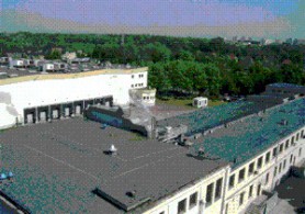 Arkusze papy należy łączyć ze sobą na zakłady : podłużny 9cm, poprzeczny od 12 do 15 cm. W warstwie wierzchniej zastosowano papę specjalną wierzchniego krycia LEMBIT NRO. Papę LEMBIT NRO zgrzewa się bezpłomieniowo lub palnikiem gazowym po przeszkoleniu (zdj. nr 5) oraz mocuje się łącznikami mechanicznymi (zdj. nr 4) - teleskop,wkręt i kołek; poprzez papę podkładową , przekładkę z welonu z włókien szklanych , płyty styropianowe (system dachowy nr 66) lub z wełny mineralnej (system dachowy nr 65) i paroizolację do podłoża betonowego. Łączniki rozmieszczamy wzdłuż zakładu podłużnego na całej powierzchni: w strefie środkowej - 3s zt., bocznej - 6 szt., narożnikowej - 9s zt.(dla obiektu położonego w I strefie wiania wiatru i dla budynku o wysokości do 20 m).