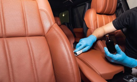 Aby skórzana tapicerka zachowała swoje właściwości oraz efektowny wygląd, powinniśmy ją czyścić i konserwować minimum 2 razy w roku. Zabierając się za czyszczenie, musimy zaopatrzyć się w rękawice ochronne, szczotkę ze średnio twardym włosiem (by nie uszkodzić skóry przy doczyszczaniu), chłonną ściereczkę z mikrofibry i – oczywiście – preparat czyszczący o neutralnym pH. Gdy zabrudzenia są mocne, możemy zastosować środki o odczynie zasadowym, jednak mogą one uszkodzić obicie. Mycie skórzanej tapicerki przebiega podobnie jak w przypadku materiałowej. Zaczynamy więc od odkurzenia wnętrza, następnie stosujemy preparat myjący, który rozprowadzamy ściereczką – działanie środka czyszczącego wypróbujmy na niewielkim i niewidocznym fragmencie. Po wyczyszczeniu tapicerki musimy odczekać 2-3 godziny, aż skóra wyschnie. Dopiero po tym czasie aplikujemy preparat konserwujący.