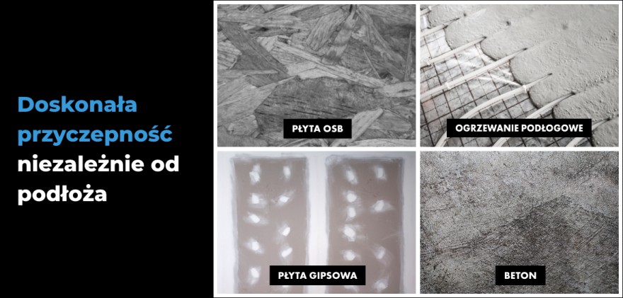 • doskonały rozpływ pod płytką